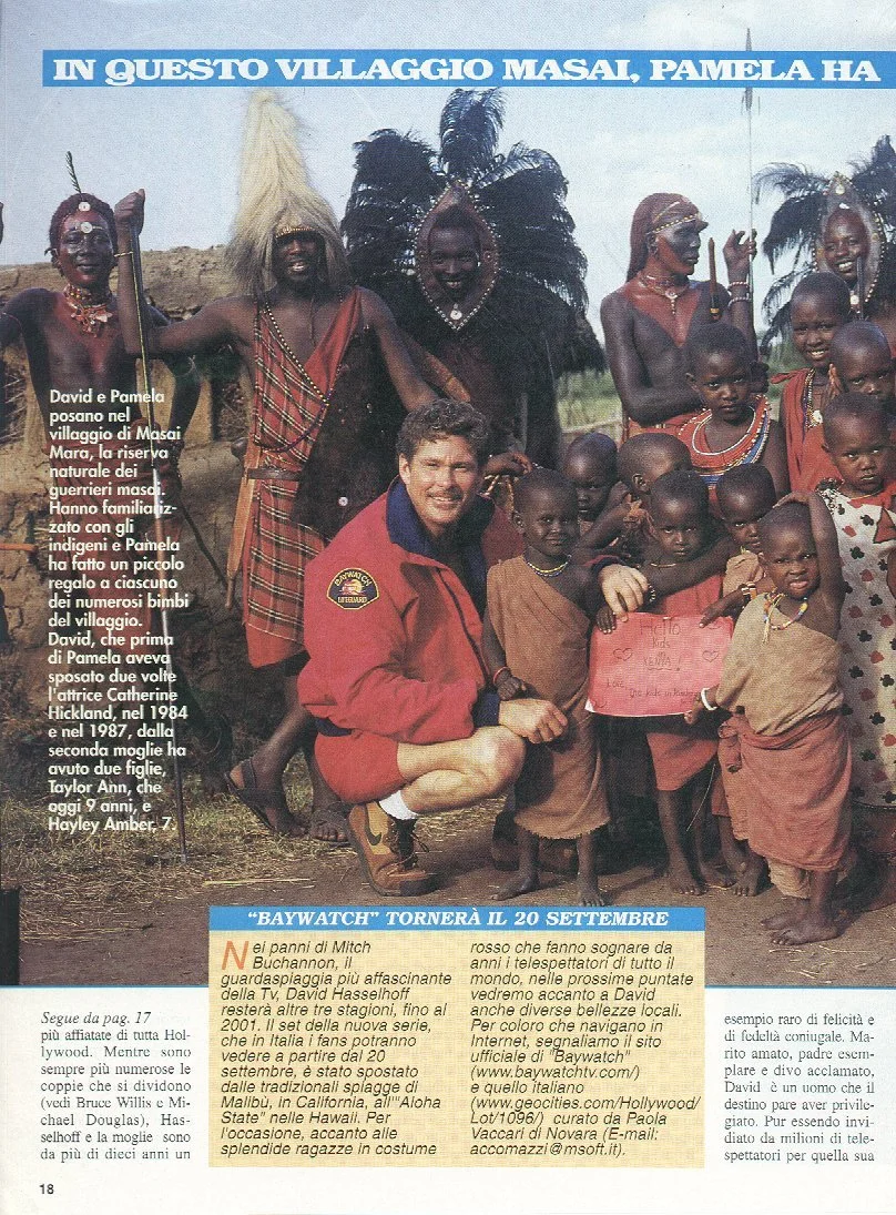 On another trip to South Africa, this time to shoot a movie, he went “to a Zulu village in Natal to was a tribal dance” and became aware that some of the Zulus had seen him on the chief’s TV as Michael Knight: “As a gag, I looked down at my watch and shouted, ‘Hey KITT, come pick me up.’ In the middle of the dance, every Zulu head swiveled to the right to see if the Knight Rider car was coming. I laughed and laughed.” Those gullible natives! A similar scene is recounted when Hoff is on safari with his family in Kenya, and he keeps pestering the Masai about whether they have ever heard of him.