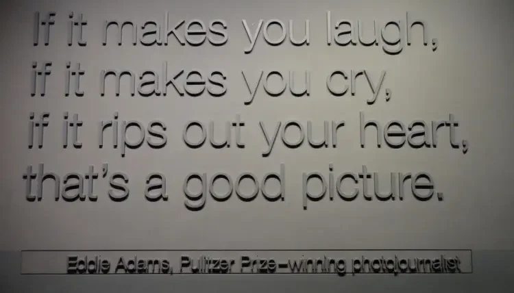 The first floor is also home to the permanent exhibition of Pulitzer Prize winning photographs. All of the winners are reproduced in small prints, but there are 30-40 enlarged photographs, each with a bit about the context of the piece and a reflective comment from the photojournalist responsible for the image. I had not seen some of these photographs, but even with the ones with which I was familiar—the execution of a Viet Cong prisoner in Saigon, the iconic image of a firefighter carrying an injured infant after the Oklahoma City bombing, the famous photo in the aftermath of the Kent State massacre—seeing them in a gallery setting, presented not just as photojournalism but really as art, was profoundly affecting. Many museum visitors were moved to tears by some of the photographs. I marveled at how impactful, how intense a photograph can be—far more moving and eloquent, in many cases, than a video of the same event, or an eyewitness account.