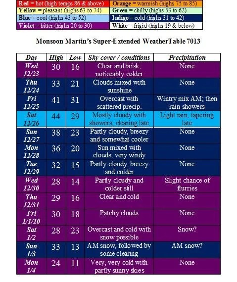 Monsoon's End-of-the-Year Forecast, Featuring WeatherTable 7013