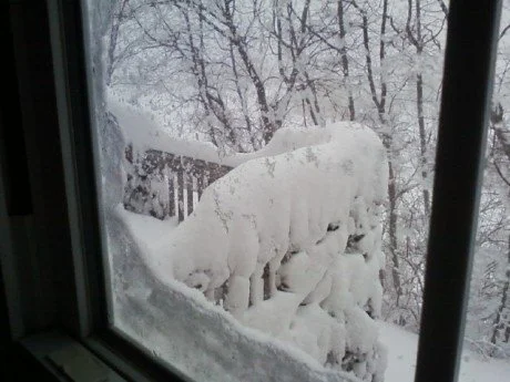 The view out my window toward the deck at 7:30 this morning, before the snow was even finished