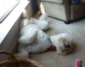 In honor of the 40th anniversary of the Apollo Moon Landing hoax, I thought I'd give you all an update on The Bunk. (There is no connection aside from the post's title; just go with it.) It’s been more than two months since I last posted an entry about The Bunk, our charming fluffball of a standard poodle—and that entry detailed my dismay at the radical shearing our boy underwent back in May to remedy the “mats” in his fur.