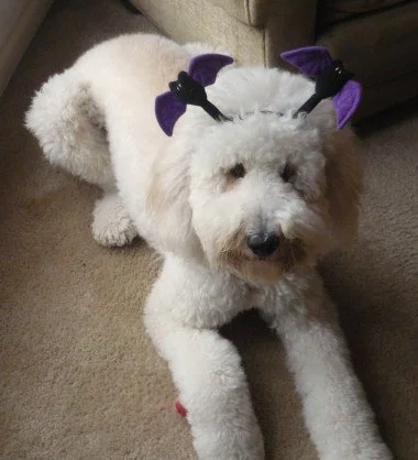 We did have The Bunk in a Halloween costume, but he was clad in it so fleetingly that no in-focus photographic evidence exists of this event. We managed to cram a bat-themed headband on him and he sat still long enough for us to snap a picture. Soon thereafter, he cuffed the offending headgear off and began to attack it.