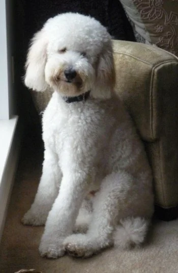 Since he was drugged up and just wanted to be left alone to sleep, Mrs. Monsoon and I neglected to brush him consistently. As a result, by the middle of this month, The Bunk’s coat was a frowzy mass of tangles and mats. And so, the good people at Total Dog and a Little Cat had to shear our boy dramatically when he returned to their fold for some grooming.